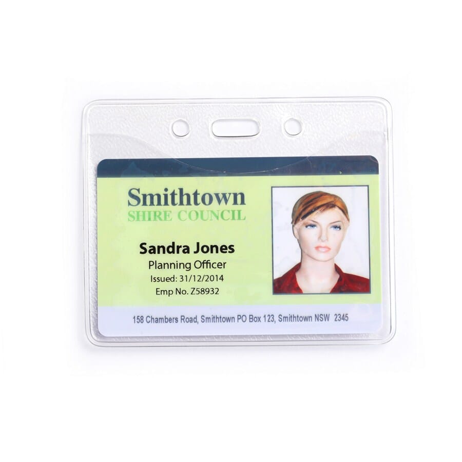 Manufactured from heavy‑duty flexible PVC, this ID Card Holder features a thick textured back for added strength and longevity, while the clear curved top pocket front allows easy card insertion and excellent visibility. The landscape orientation is perfectly suited for standard CR80 / A7‑size ID cards, ensuring a secure and professional presentation.