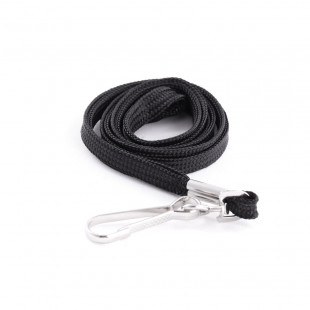 Black 8mm Flat Tubular Economy Lanyard with a Swivel Hook Attachment.